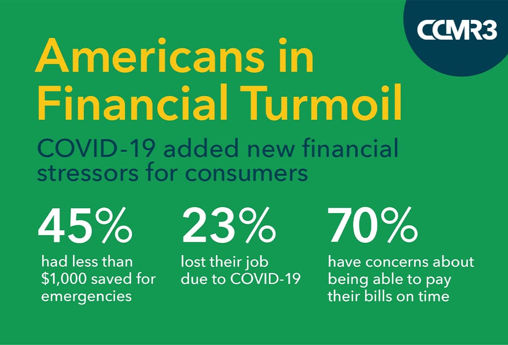 Syracuse, N.Y. – October 22, 2020 – As the pandemic adds financial strain to Americans who were already struggling to pay their bills on time, those contacted by debt collectors face heightened stress. A new survey from CCMR3 reveals that 71% of Americans who have been behind on bills in the last two years have been contacted by the original creditor or collection agency. Of those, more than half (58%) had a negative experience. “Stress” was one of the top associations respondents said they have with the term “collection agency.” “Companies that want to recoup their lost funds need to take a better approach to collections. Successful recovery isn’t contingent on aggressive pursuit and demanding communications, but by taking the time to listen to consumers’ financial challenges and help them find a way to repayment,” said Jacob Corlyon, Co-Founder and CEO of CCMR3 and president of the New York State Collectors Association. Unfortunately, the data shows that not enough businesses are taking a partnership approach to collections with consumers. Of those surveyed, 41% said creditors were not understanding of their situation and did not provide alternative repayment solutions. Of those surveyed, 70% said they have concerns about being able to pay their bills on time in the next three months, as many face job losses and pay cuts due to the pandemic. And nearly half (45%) said they have less than $1,000 in an emergency fund. “Especially in today’s economy, businesses need to shift their strategy and find the right partner to help their customers pay off their debt. At CCMR3, we’ve gained success by approaching collections with compassion for the hardships people are facing. Not only do we help our clients recover lost revenue, we provide educational tools to help their customers better understand their finances, putting them on a path to financial success,” said Corlyon. For key findings on the financial impact the pandemic has caused and strategies for how businesses can recover revenue, visit https://lp.capitalcollect.com/ccm-financial-impact-survey/. About CCMR3 CCMR3 provides modern, technology-driven collections, debt purchasing, and litigation services for enterprises that need engagement with empathy, experience with compliance, and excellence in debt recovery. Leveraging state-of-the-art analytics and machine learning combined with a service-focused approach, CCMR3 helps organizations from a variety of industries protect their brands and improve their bottom lines. To learn more, visit www.ccmr3.com and follow us on LinkedIn
